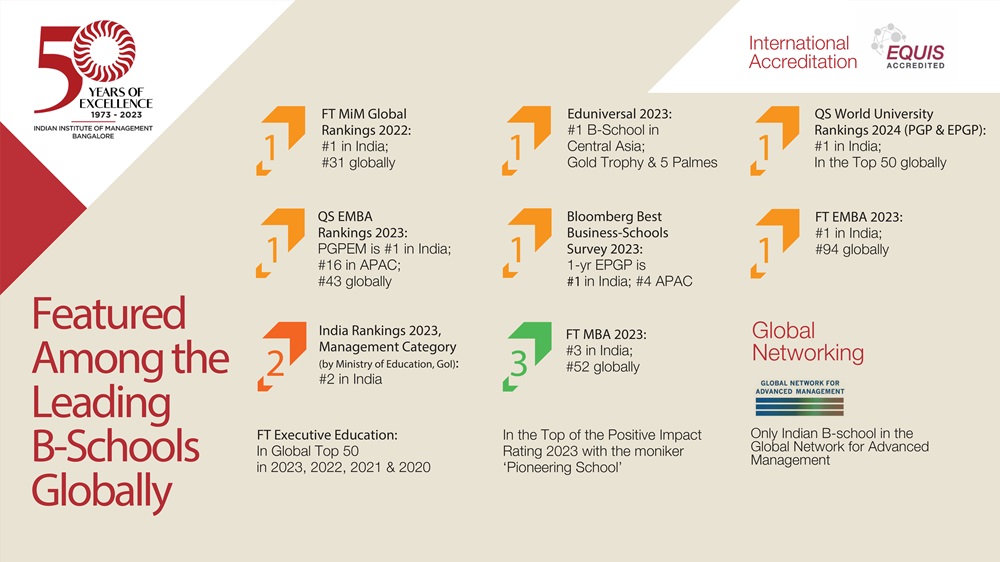 In the 70s and 80s, IIMB fulfilled the needs of the Government and PSUs. In the early 1990s, IIMB pivoted to focus its efforts on the needs of the Private Sector. IIMB started NSRCEL in 2002, one of the earliest incubation centres in India. In 2014, IIMB became the first B-School to offer MOOCs. IIMB is rated as the most friendly campus for differently abled students.
